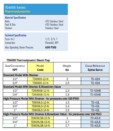 Model: Thermodynamic Steam Trap - TD600S Series by Watson McDaniel