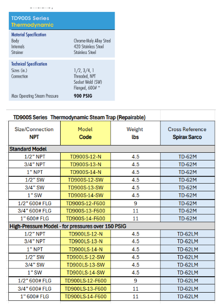 Model: Thermodynamic Steam Trap - TD900S Series by Watson McDaniel