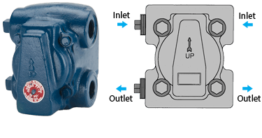 FT-Series Float and Thermostatic Steam Traps have Cast Iron Bodies ••• H-Pattern Piping Connections ••• 75 psig Operating Pressures ••• Stainless Steel Internals. Typically used on lower pressure HVAC and light industrial steam process applications such as unit heaters, pressing machines, heat exchangers, steam coils. Contain a welded stainless steel thermostatic air vent for rapid air removal on system start-up. The dual inlet-outlet H-Pattern connection allows for additional flexibility in installation.